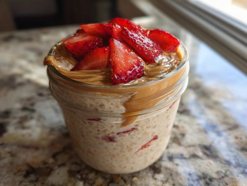 5-Minute Strawberry Peanut Butter Overnight Oats Magic
