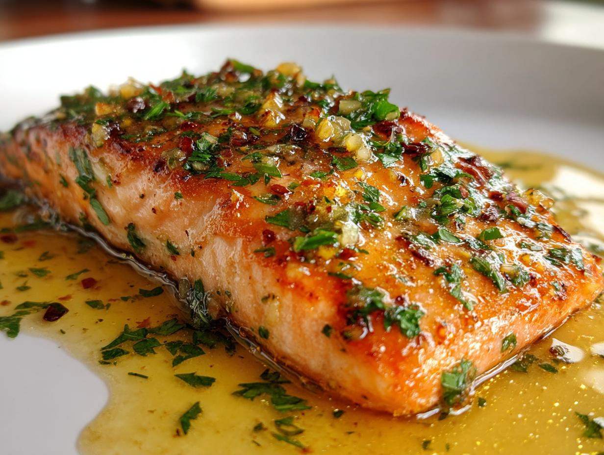 The moment your salmon flakes easily with a fork – boom! Pull it out and drown it in that golden garlic butter sauce. Resist the urge to cut into it immediately – let it rest for 2-3 minutes so the juices settle. Then dig in and prepare to be amazed at what you just created!