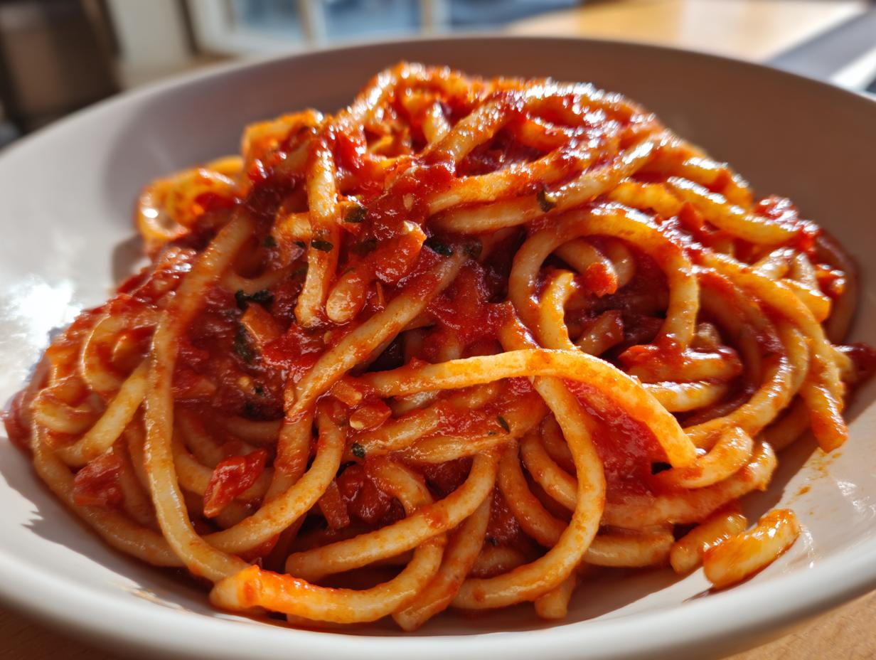 When your pasta’s about 2 minutes away from being al dente, add those crushed tomatoes to your garlicky oil. Let it bubble gently for 10 minutes – enough time to thicken slightly but still keep that fresh tomato taste. Drain your pasta (save a cup of that starchy water!), then dump those noodles right into the skillet.