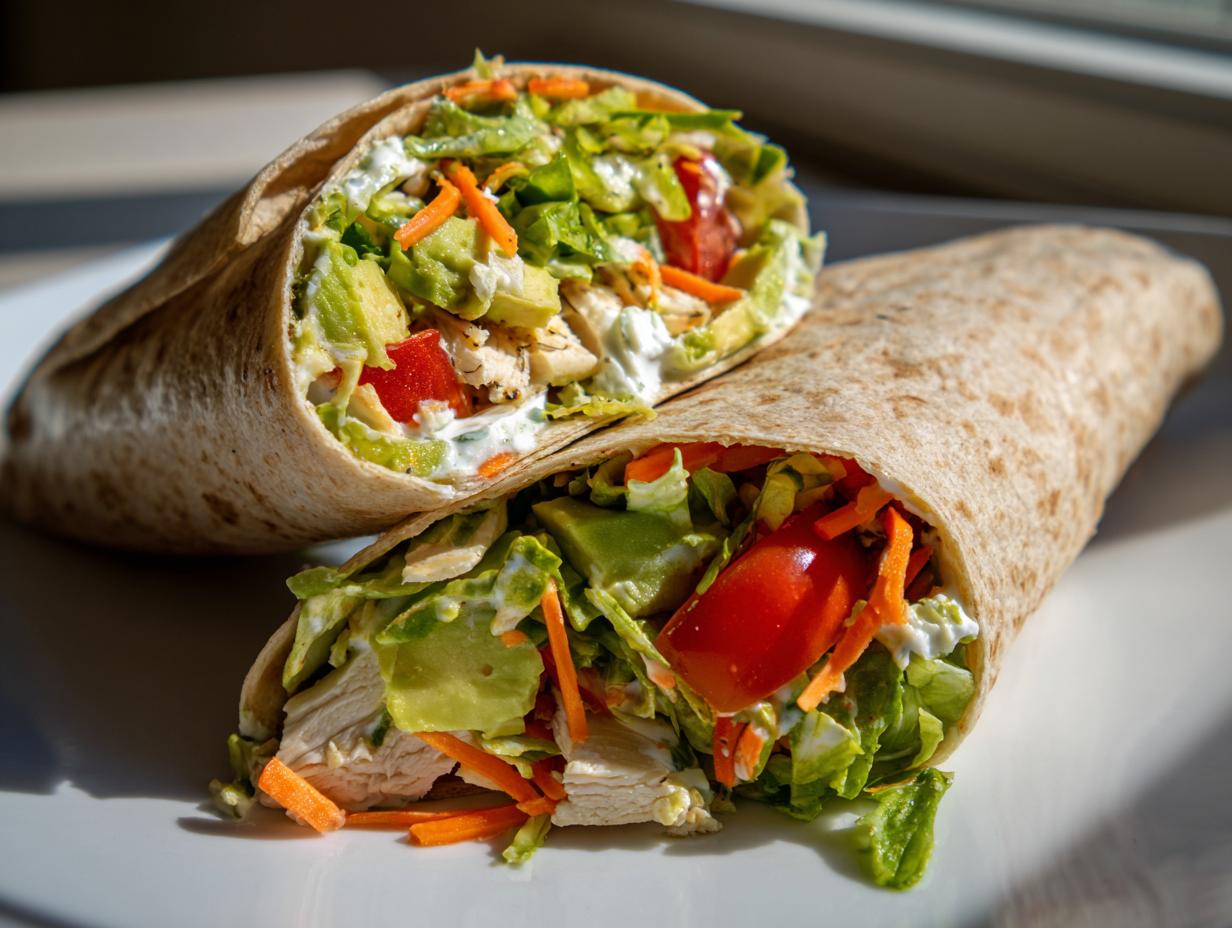 Okay, let me gush for a sec about why these wraps are my lunchtime superheroes! First, they take just 15 minutes—yes, that includes chopping time if you’re not as slow as I am with a knife. Second, they’re like a choose-your-own-adventure book: swap chicken for tofu, throw in leftover roasted veggies, or smear on hummus instead of yogurt. You’ll never get bored! Plus, they’re packed with protein and crunchy veggies to keep you full all afternoon (no 3 p.m. snack attacks). And the best part? Toss one in foil and you’ve got a mess-free, portable lunch that survives your bag commute. Trust me, your future busy self will thank you!