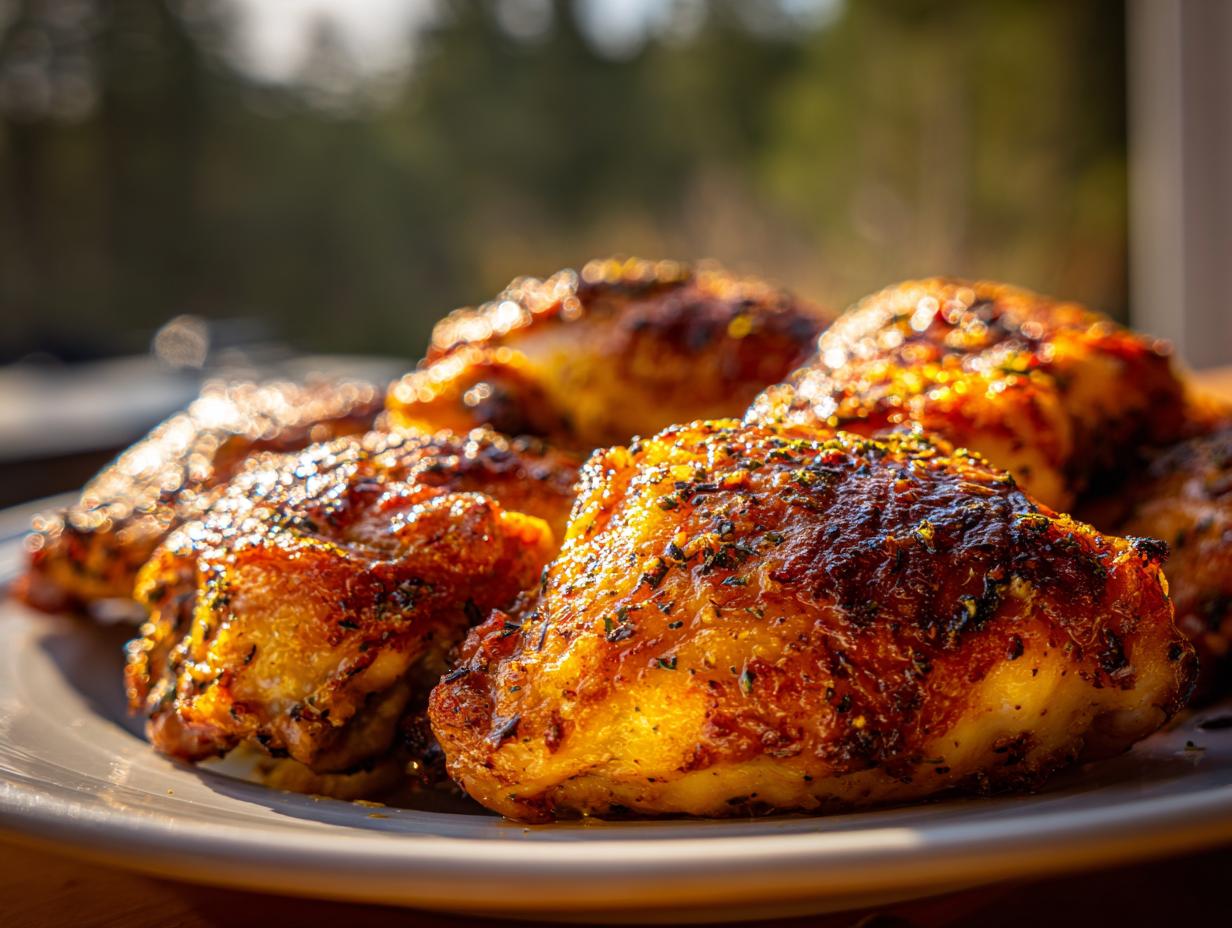 Grab your chicken thighs and pat them dry with paper towels (this helps the skin get extra crispy). In a bowl, toss them with olive oil, Italian herbs, salt, and pepper. Don’t be shy – really massage those seasonings in! My grandma always said “season with love,” and she wasn’t wrong.