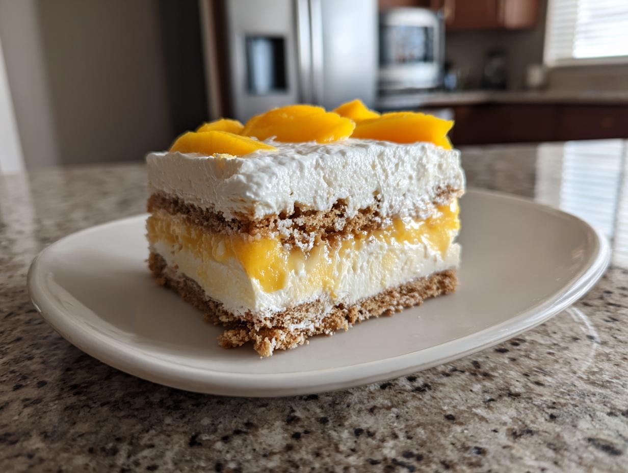 Okay, here’s the deal—this dessert is best served ice-cold, straight from the fridge. I like to take it out just 5 minutes before serving so the cream softens slightly (but not too much!). For a fancy touch, garnish with fresh mint leaves or extra mango slices—it makes it look bakery-worthy with zero effort. My grandma always said presentation matters, and she wasn’t wrong!