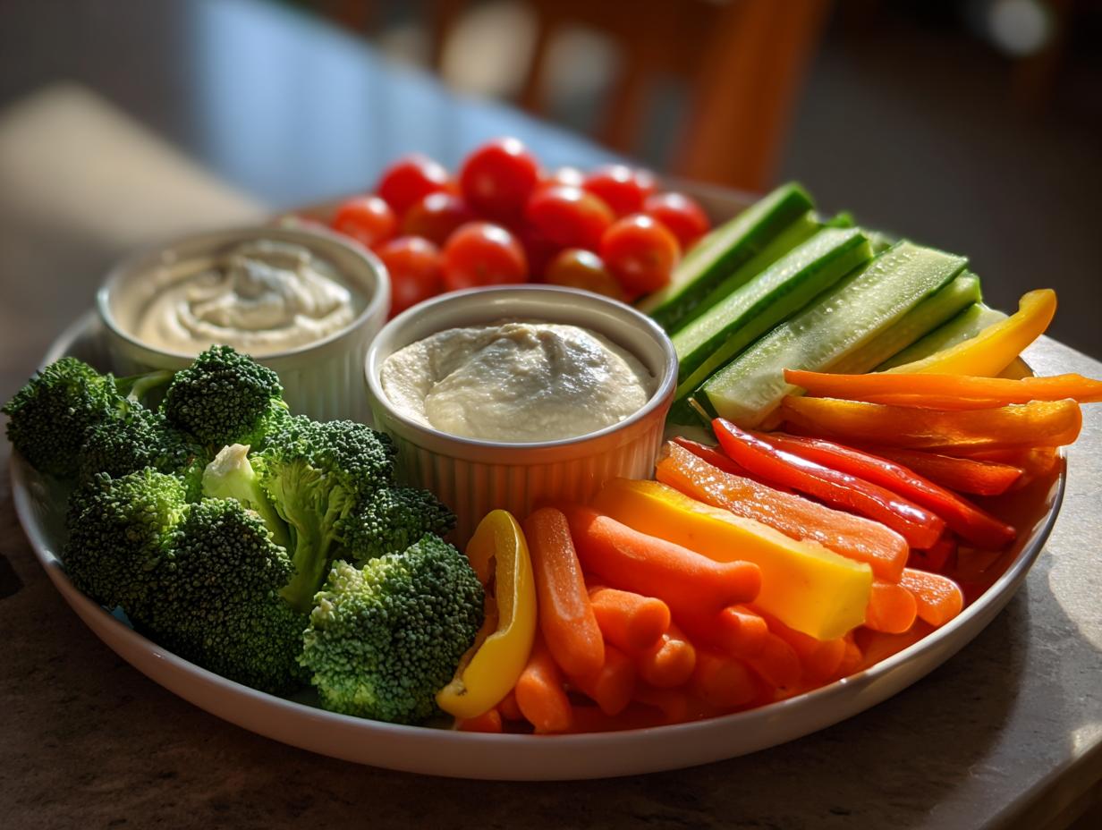 Need to accommodate special diets? No problem! Swap the ranch for my favorite dairy-free avocado dip – it’s creamy perfection. Gluten-free crackers make great additions too if you want some crunch. And if you’re feeling extra, try serving different colors of hummus (I swear, beet hummus in a deep pink hue always disappears first). The trick is keeping about five different vegetable options so there’s something for everyone. Trust me, your cousin who’s doing Whole30 will thank you!